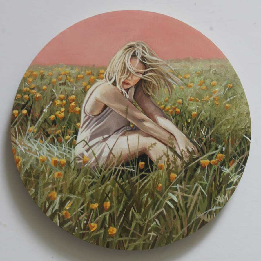 A Summer Dream’ is a small painting on circular wood panel. This portrait celebrates the memory of hazy days in the sun.
